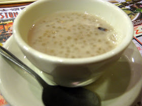 After eating, we were in a hurry to get to Mervyn's before closing time, but the waiter asked us if we were leaving already. Turns out dessert was coming. This was a bowl of tapioca, taro, and black eyed peas pudding, the yummiest part of the meal and a nice touch.